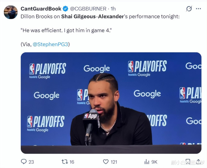 赛后狄龙这么说说念:SGA今晚的发达确实很出色,但系列赛要赢4场,我会在G4处置他的。