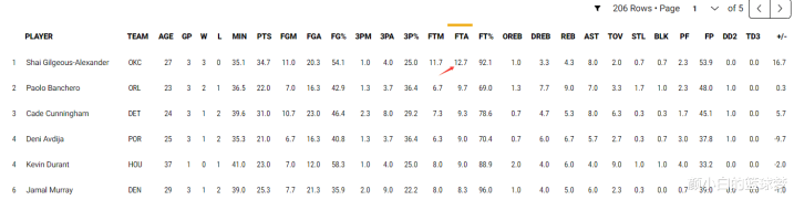 亚历山大这三场比赛想象38个罚球定约第一,场均12.7个罚球亦然定约第一,是以SGA说他不需要罚球也有点调侃,毕竟他的罚球如故定约最多的存在。